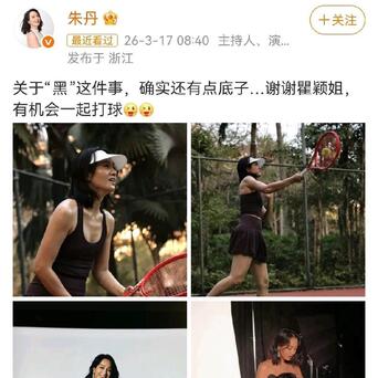 朱丹发文回应瞿颖说自己黑:“关于黑这件事,我确实还有点底子,谢谢瞿颖姐,有机会一起打球。”